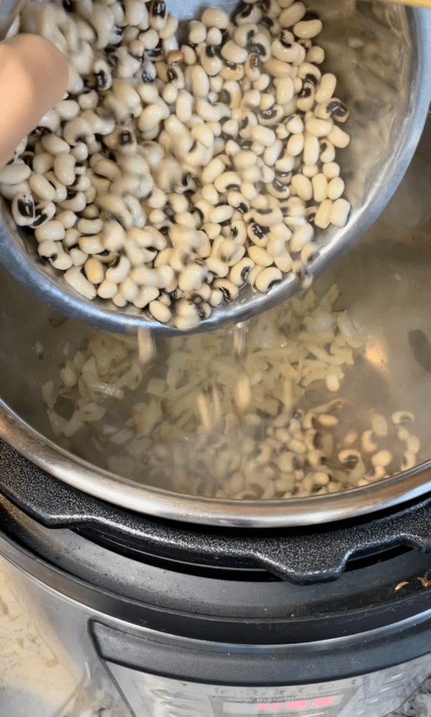 Step 3: Using the InstantPot; on sauté mode, add oil, cumin (jeera) seeds, chopped onions, asafoetida (hing), curry leaves (curry patha); sauté together